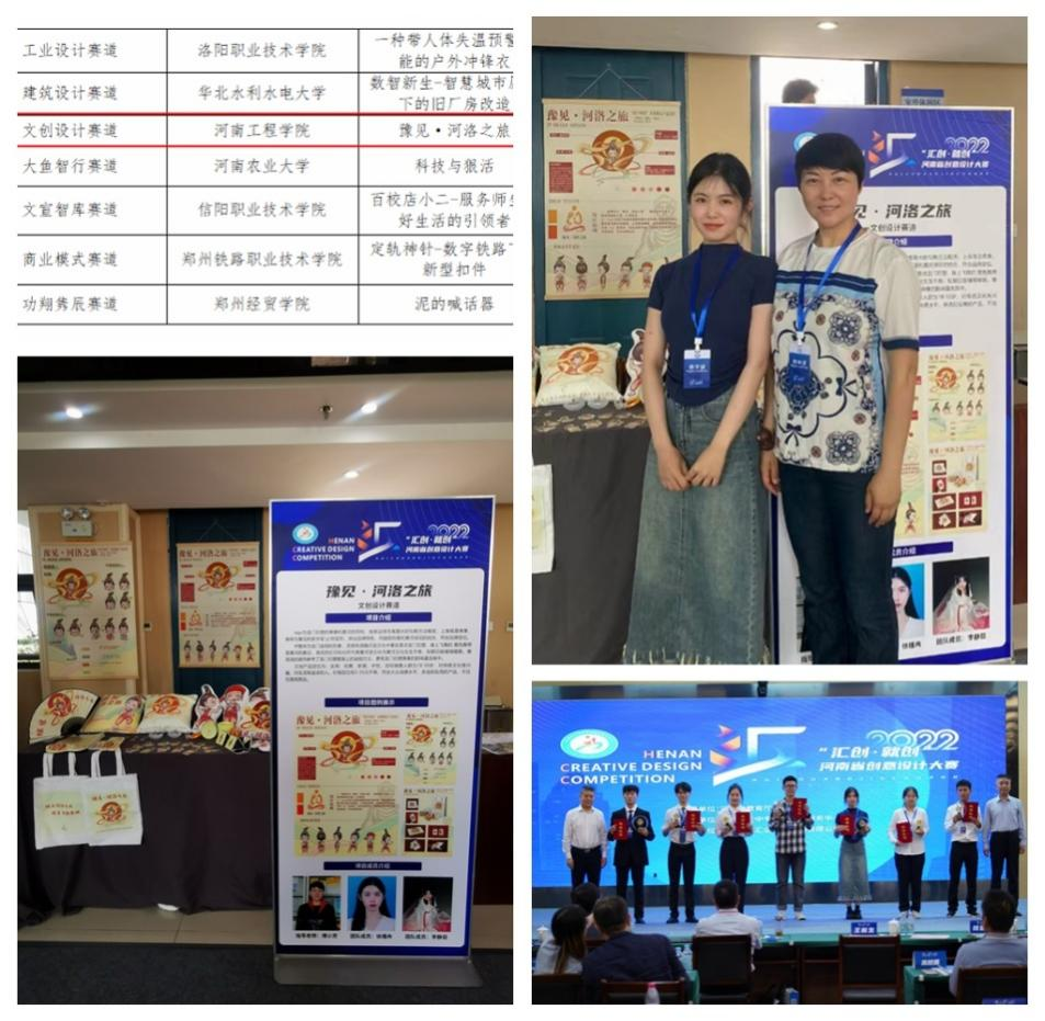 在普通高等学校“2023设计河南”系列大学生学科竞赛中,pg官网艺术设计学院徐槿冉、李静茹团队的《豫见·河洛之旅》项目脱颖而出,荣获第三届河南省创意设计大赛特等奖。