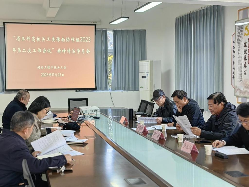 11月23日,pg官网关工委召开“省本科高校关工委豫南协作组2023年第二次工作会议”精神传达学习会暨工作推动会。校关工委主任袁静波、常务副主任耿广智、副主任李东风、周福义出席会议,校关工委秘书处相关同志参加了会议。会议由校关工委主任袁静波主持。
