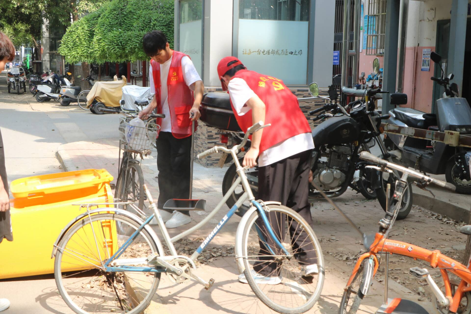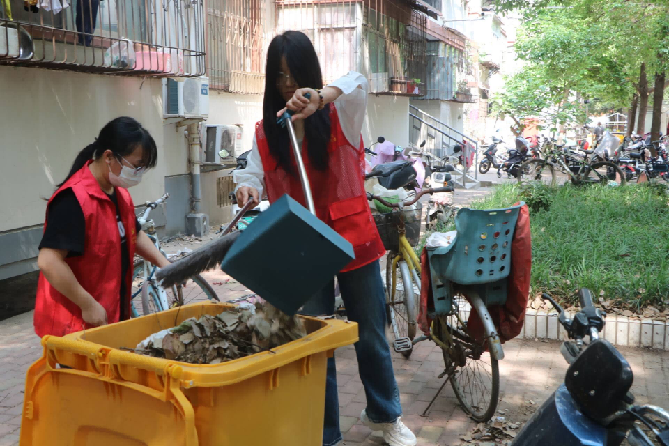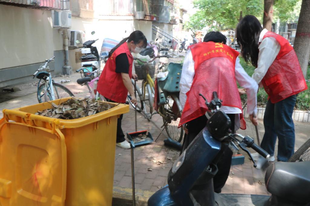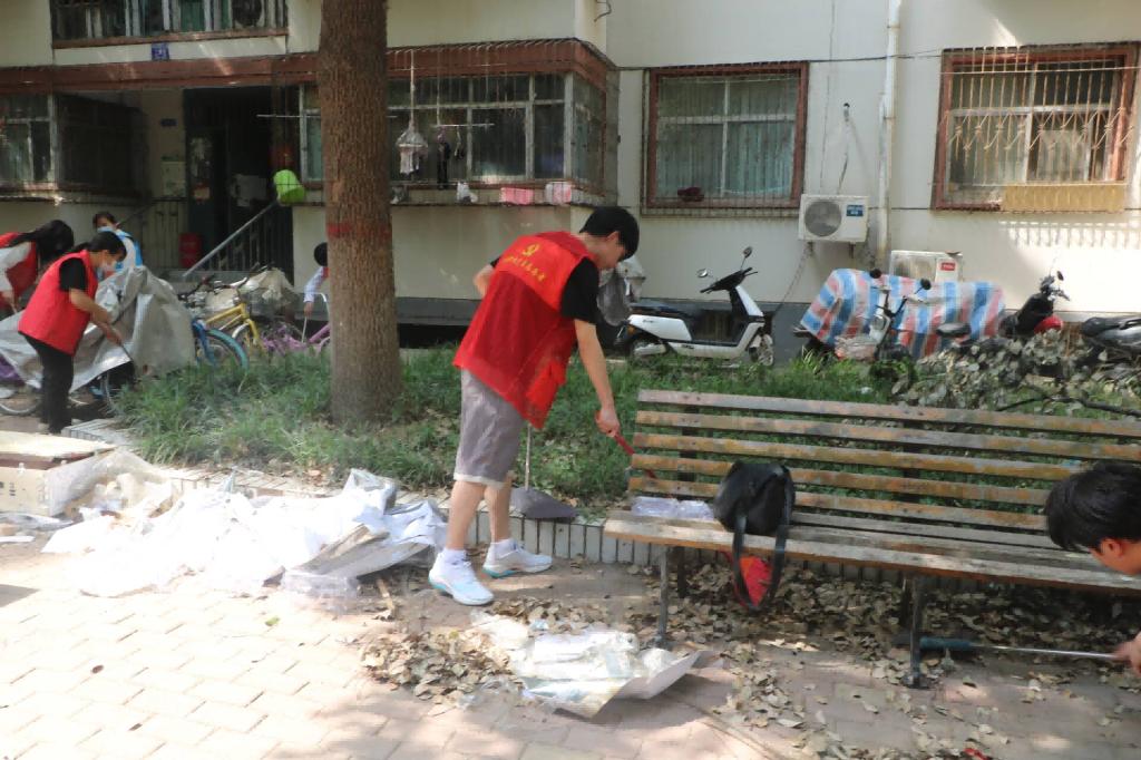 5月8日,纺织工程学院学生党员、入党积极分子20余人利用休息时间,深入中原区协作路社区,开展志愿清理卫生死角工作。