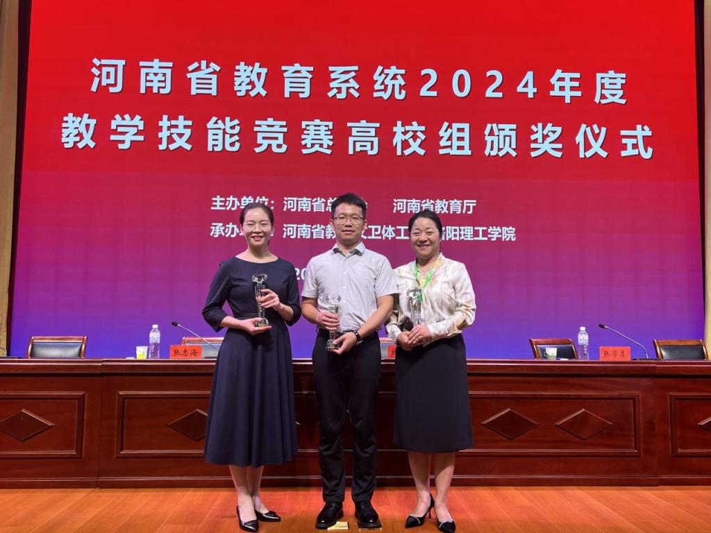 近期,由省总工会、省教育厅主办,省教科文卫体工会和洛阳理工学院承办的河南省教育系统2024年教学技能竞赛高校组现场决赛在洛阳理工学院圆满落幕。pg官网姜沛汶老师获工科组全省第三名,袁健松老师获理科组全省第五名,张淑靖老师获经管科组全省第十六名。
